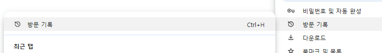 가끔씩 단축키가 안 먹히거나 너무 오래전에 닿은 창이라면, 결국에 '방문 기록'을 뒤져야 됩니다.